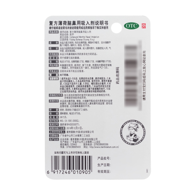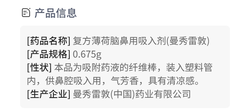 复方薄荷脑鼻用吸入剂(曼秀雷敦)