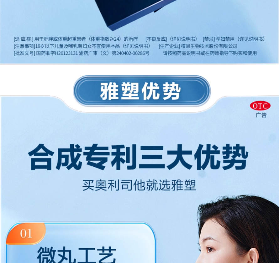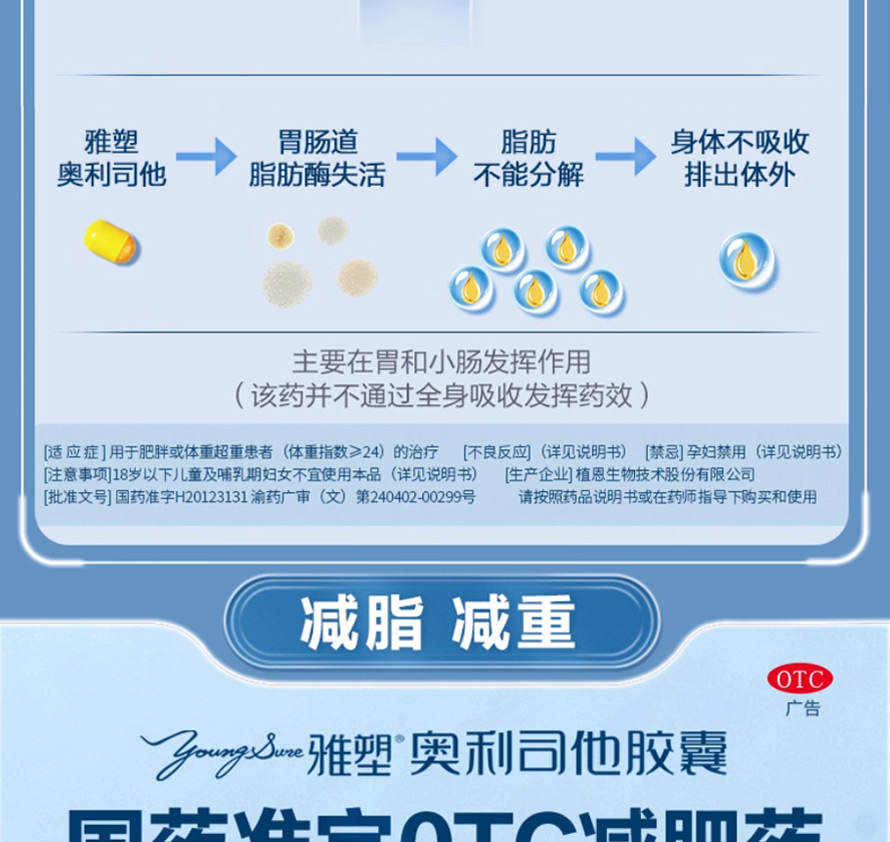 2.不推荐体重指数低于24的人群使用本品。体重指数近似值的计算方法为体重/身高2(体重以千克为单位计算,身高以米为单位计算)。