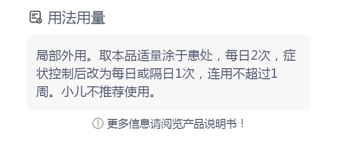 4、不宜大面积、长期使用;用药1周后症状未缓解,请咨询医师。