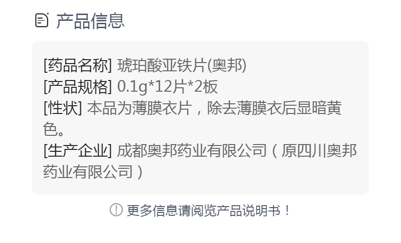 2.治疗剂量不得长期使用,应在医师确诊为缺铁性贫血后使用,且治疗期间应定期检查血象和血清铁水平。