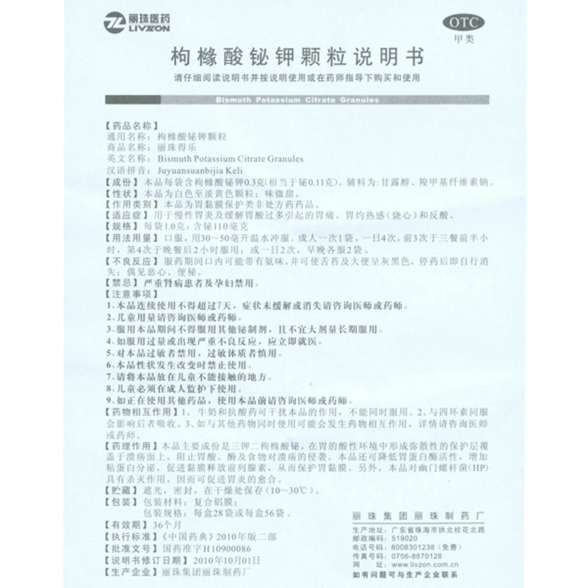 枸橼酸铋钾颗粒(丽珠得乐)