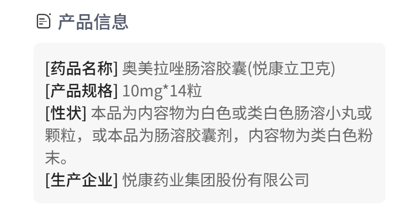 奥美拉唑肠溶胶囊(悦康立卫克)