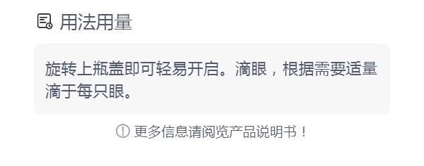 10.本品不含防腐剂,不致对眼睛造成刺激,但若有不适,请停止使用,向医生咨询。