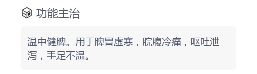 用于脾胃虚寒,脘腹冷痛,呕吐泄泻,手足不...