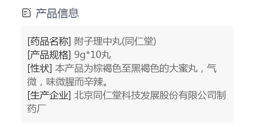 附子理中丸(同仁堂)