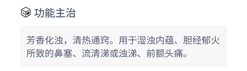 用于鼻塞、流清涕或浊涕、前额头痛。