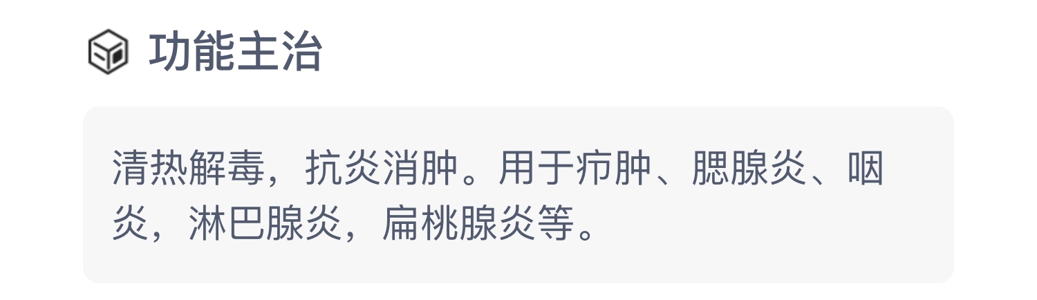 用于淋巴腺炎,扁桃腺炎等。