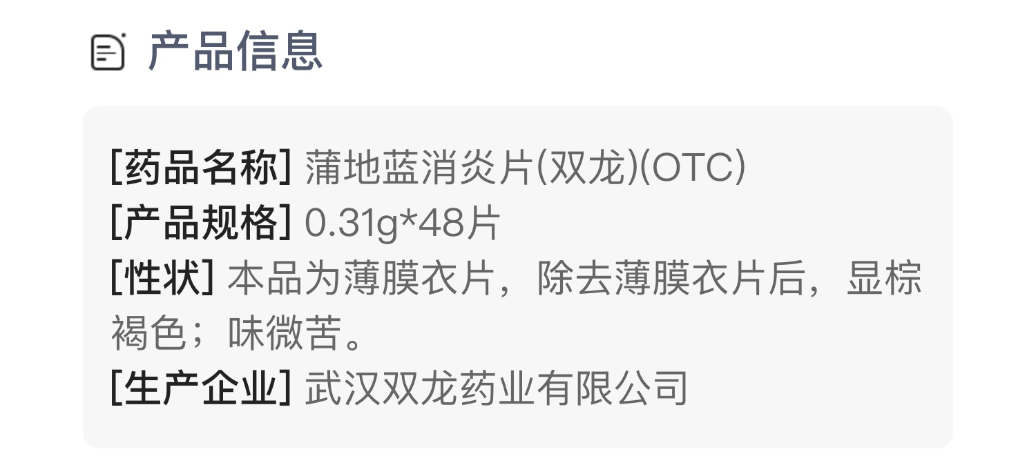 蒲地蓝消炎片(双龙)(OTC)