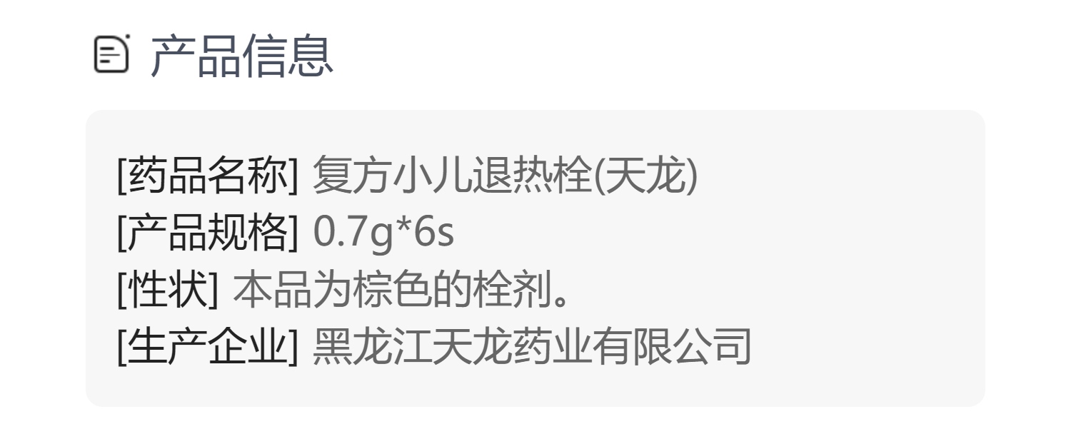 复方小儿退热栓(天龙)
