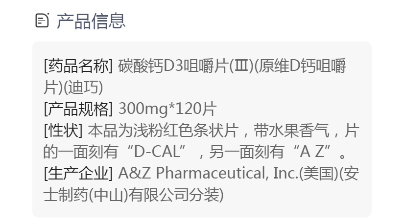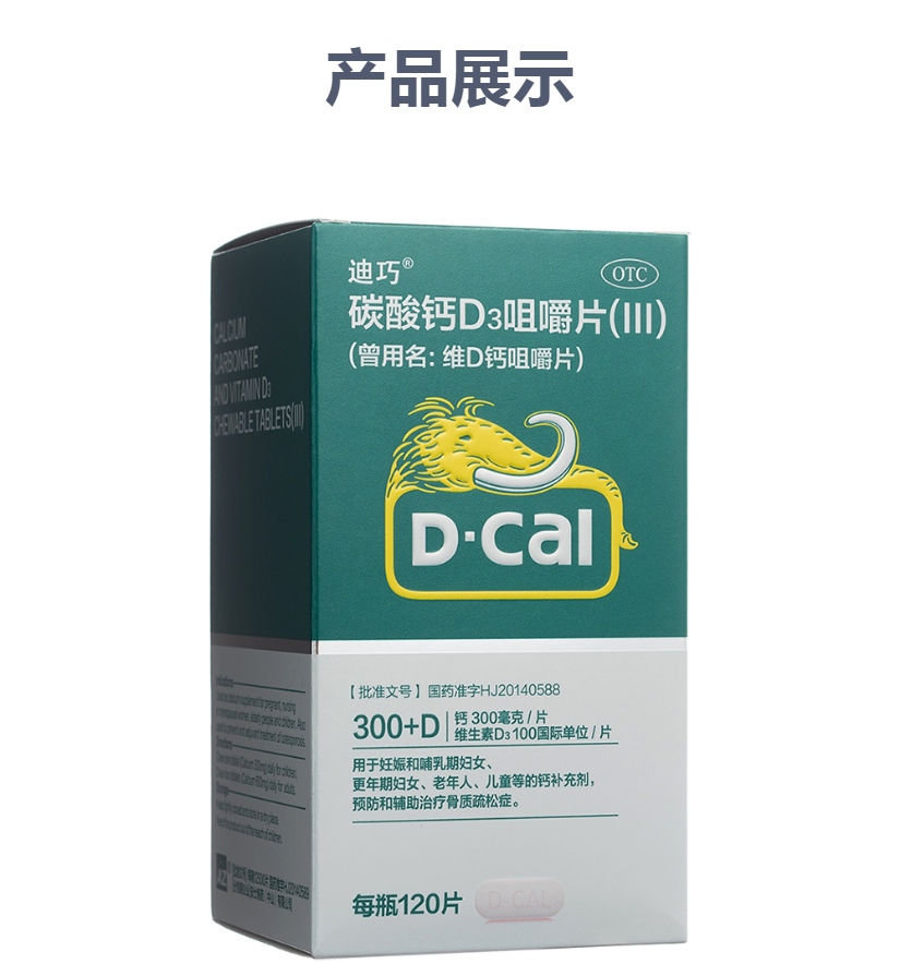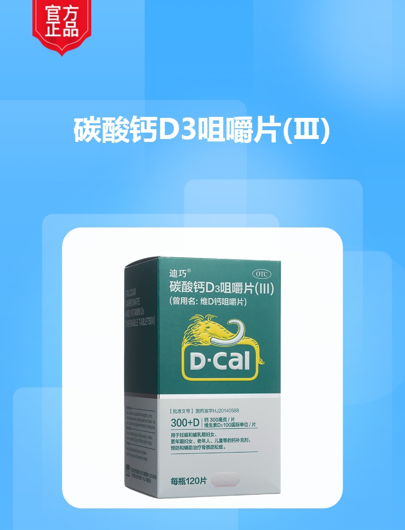 碳酸钙D3咀嚼片(Ⅲ)(原维D钙咀嚼片)(迪巧)