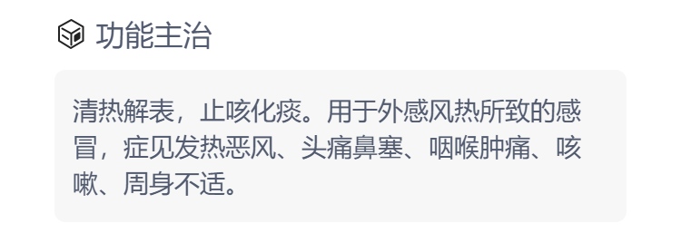1.忌烟、酒及辛辣、生冷、油腻食物。 2.不宜在服药期间同时服用滋补性中成药。 3.风寒感冒者不适用,其表现为恶寒重,发热轻,无汗,头痛,鼻塞,流清涕,喉痒咳嗽。 4.高血压、心脏病、肝病、肾病等慢性病严重者应在医师指导下服用。 5.服药三天后症状无改善,或症状加重,或出现新的严重症状如胸闷、心悸等应立即停药,并去医院就诊。 6.小儿、年老体弱者、孕妇应在医师指导下服用。 7.脾胃虚寒,症见腹痛、喜暖、泄泻者慎用。 8.糖尿病患者慎用。 9.对本品过敏者禁用,过敏体质者慎用。 10.本品性状发生改变时禁止使用。 11.儿童必须在成人监护下使用。 12.请将本品放在儿童不能接触的地方。 13.如正在使用其他药品,使用本品前请咨询医师或药师。