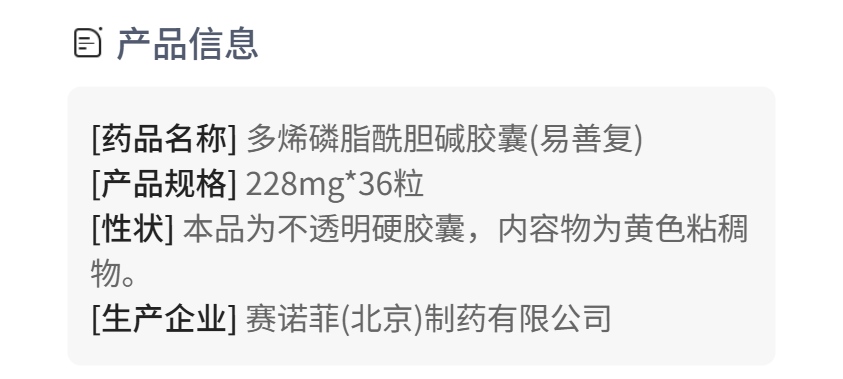 多烯磷脂酰胆碱胶囊(易善复)