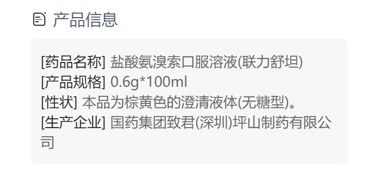 盐酸氨溴索口服溶液(联力舒坦)