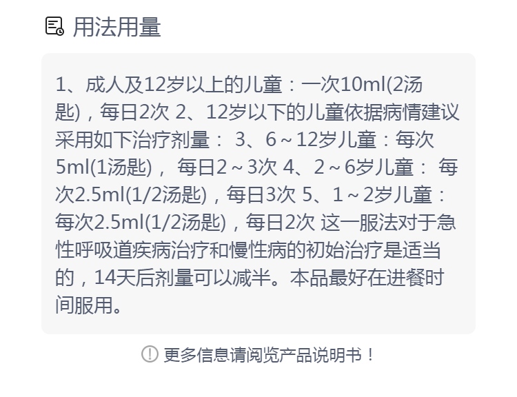 1.孕妇、哺乳期妇女服用前请咨询医师 2.应避免与中枢性镇咳药(如右美沙芬等)同时使用,以免稀化的痰液堵塞气道。 3.本品为一种黏液调节剂,仅对咯痰症状有一定作用,在使用时应注意咳嗽、咯痰的原因,如使用7日后未见好转,应及时就医。 4.如服用过量或发生严重不良反应时应立即就医。 5.当本品性状发生改变时禁用. 6.儿童必须在成人监护下使用. 7.请将此药品放在儿童不能接触的地方。 8.对本品过敏者禁用,过敏体质者慎用. 9.如正在使用其他药品,使用本品前请咨询医师或药师.