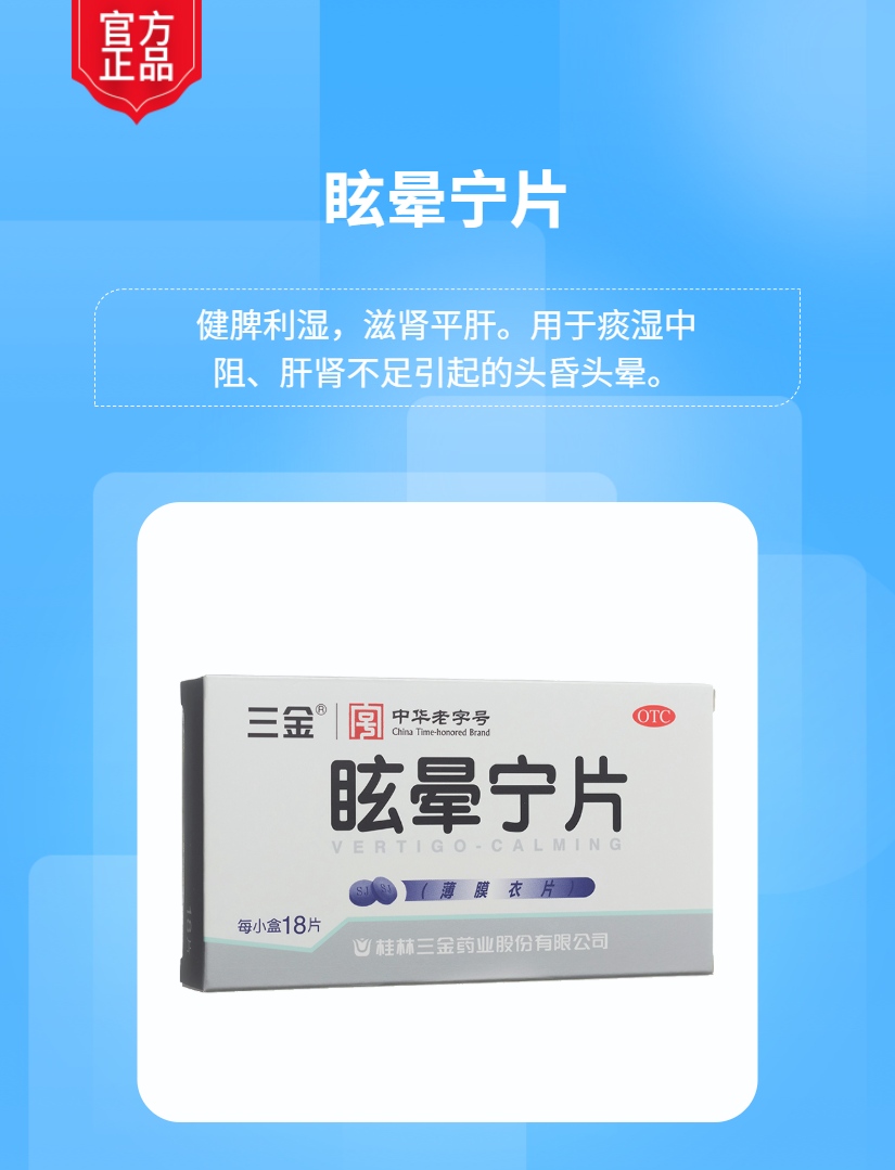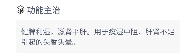 用于痰湿中阻、肝肾不足引起的头昏头晕。