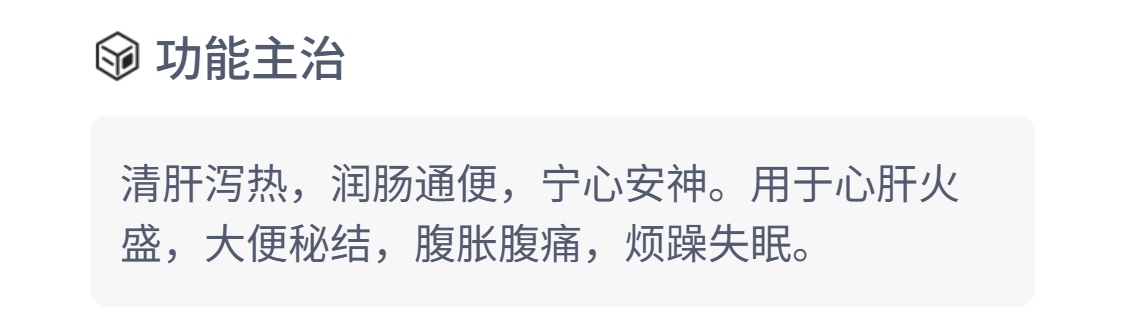 用于心肝火盛,大便秘结,腹胀腹痛,烦躁失...