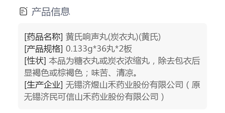 黄氏响声丸(炭衣丸)(黄氏响声)