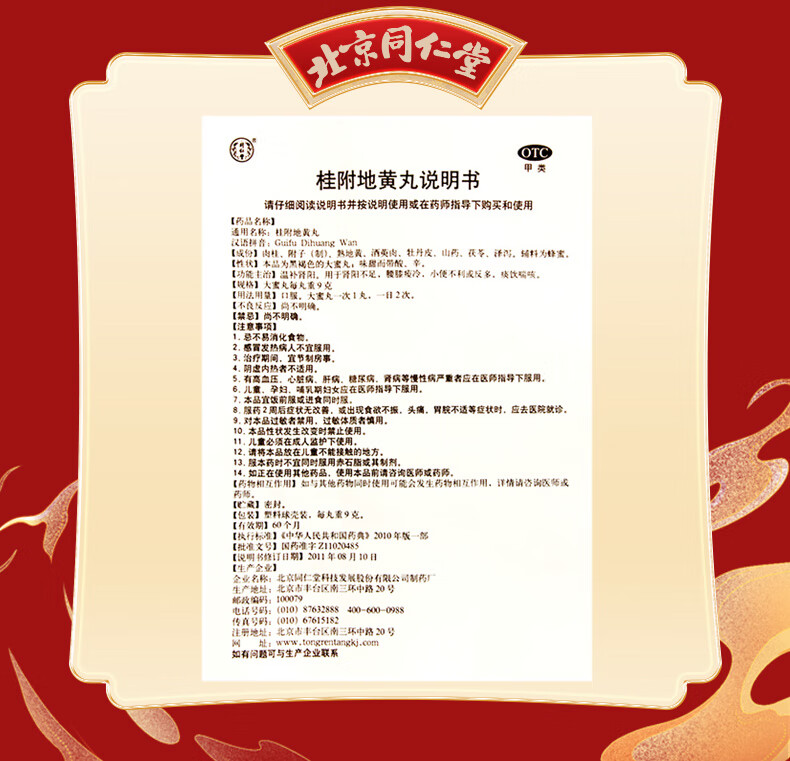 桂附地黄丸(同仁堂)(大蜜丸)