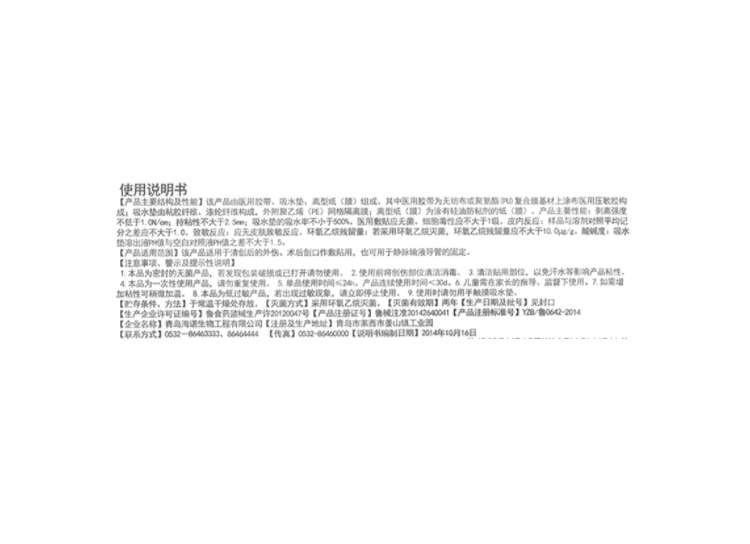1.本品为密封的无菌产品, 若发现包装破损或一打开请勿使用。2.使用前将创伤部位清洁消毒。3.清洁贴用部位,以免汗水等影响产品粘性。4.本品为一次性实用产品,请勿重复使用。5.单品实用时间≤24H。产品连续实用时间为﹤30D。6.儿童需在家长的指导、监督下实用。7.如需增加粘性可稍微加温。8.本品为低过敏产品,若出现过敏现象,请立即停止使用。9.使用时请勿用手触摸吸水垫。