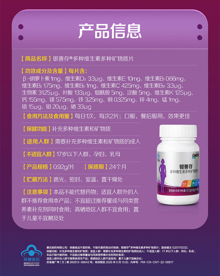 本品不能代替药物;不宜超过推荐量或与同类营养素补充剂同时食用;适宜人群外的人群不推荐食用本产品;高硒地区人群不宜食用;置于儿童不宜触及处