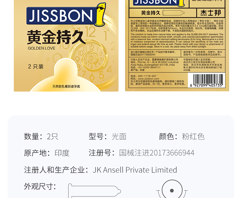 天然胶乳橡胶避孕套(杰士邦)(黄金持久)