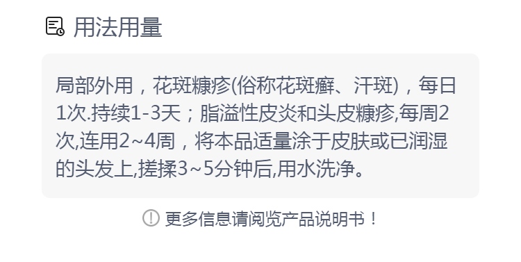 .使用2~4周后,症状无改善或加重,应停药并咨询医师或药师。 2.不得用于皮肤破溃处。 3.避免接触眼睛和其他黏膜(如口、鼻等)。 4.用药部位如有烧灼感、红肿等情况应停药,并将局部药物洗净,必要时向医师咨询。 5.儿童、孕妇及哺乳期妇女应在医师指导下使用。 6.对本品过敏者禁用,过敏体质者慎用。 7.本品性状发生改变时禁止使用。 8.请将本品放在儿童不能接触的地方。 9.儿童必须在成人监护下使用。 10.如正在使用其他药品,使用本品前请咨询医师或药师。 11.本品不含激素,在使用时,对局部长期使用皮质激素类药物的患者,建议应在2-3周内逐渐停用皮质激素类药物,以防止发生反跳现象(反跳现象是指症状控制之后减量太快或突然停药可以使原病复发或加重。 12.脱发增加通常与脂溢性皮炎和头皮糠疹和头皮屑有关,在使用本品是罕见脱发增加的报告。 13.本品如被意外食入,需要进行支持疗法和对阵治疗,为避免吸入,不应进行催吐或洗胃。 14.在妊娠期妇女中尚未进行充分的对照研究,对非妊娠人群,在头皮处外用本品时,检测不出血浆中的酮康唑,在全身外用本品,可以在血浆中检测到酮康唑,没有在妊娠期本品相关的已知风险。 15.在哺乳期妇女中尚未进行充分的对照研究,没有在哺乳期使用本品相关的已知风险。 16.在婴儿和12周岁一下的儿童中。安全有效使用本品的信息尚未明确