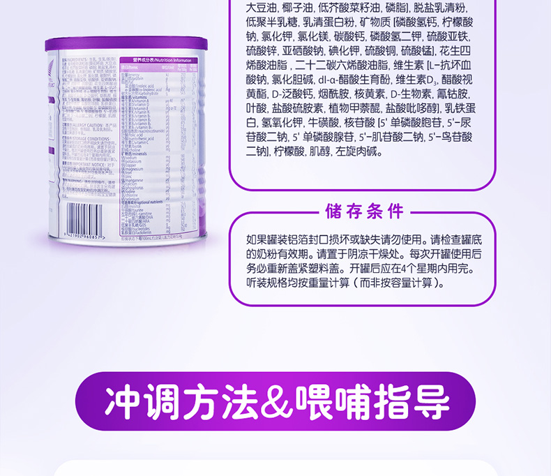 过敏提示ALLERGY CAUTION:本产品含有大豆制品,鱼制品,乳及乳制品。乳蛋白来源于牛乳。 重要信息/IMPORTANT NOTICE:对于0-6月龄的婴儿最理想的食品是母乳,在国乳不定或无的乳时可食用本产品。喂哺前请咨询医生的建议。