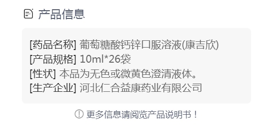 葡萄糖酸钙锌口服溶液(康吉欣)