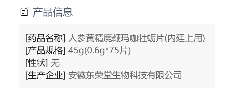人参黄精鹿鞭玛咖牡蛎片(内廷上用)
