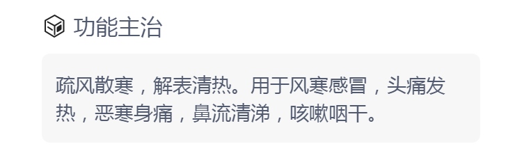 用于头痛发热,鼻流清涕,咳嗽咽干。